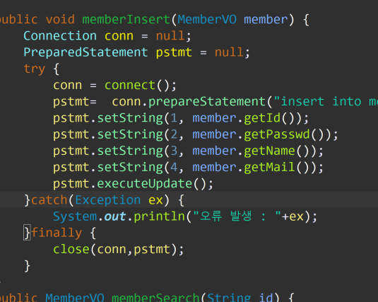 위 코드에서 pstmt.executeUpdate(); 를 써주지 않아서 한참을 헤맸다. 애초에 db에 정보를 집어넣으려고 계속 시도했는데, 값이 들어가지 않은 걸 보고 db관련 부분에 문제가 있겠거니 해서 connection 부분만 계속 찾아봤다.