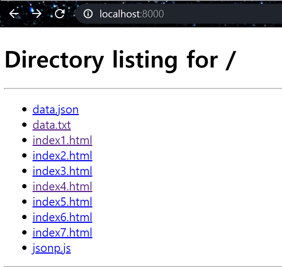 이렇게 되면 예제를 실행시킬 수가 없게 되는데, 그래서 찾게 된 방법이 완전 초간단한 임시서버를 운용해서