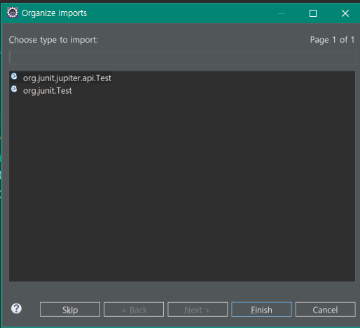 ctrl + shift+ o 를 눌러서 import를 해주는데 다음과 같은 창이 떴다.