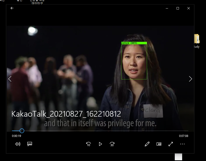 팀원 분 중 한분께서 비정삼회담 영상을 이용해서 만드신 것도 있는데 그건 나중에서야 결과가 나오긴했지만 꽤나 잘 인식했다. 그리고 한 강사님께서 마이클잭슨 영상을 추천해주셨는데 캐빈이 머리를 너무 흔들어서 인식이 잘안됬다. 그리고 검정말들이 나오면서 흑인으로 인식하는 바람에 그냥 빼버렸다.