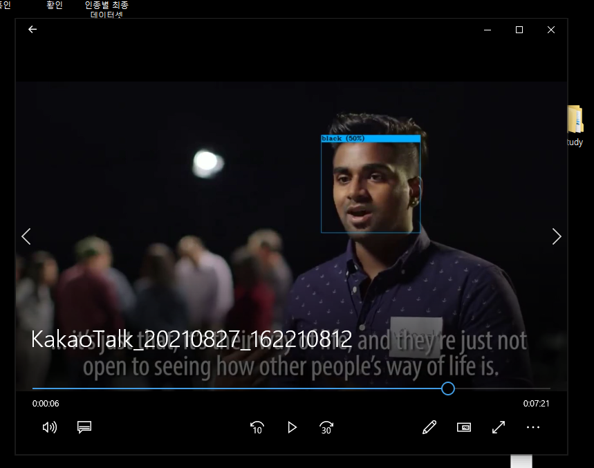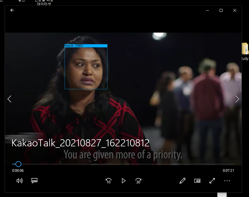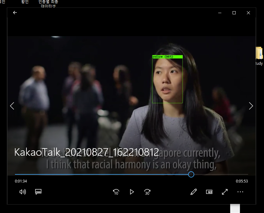 중간에 어두운 화면이 있을때 black으로 표시되거나 혹은 서양인이더라도 밝은 색이 안나오면 yellow로 표시되는 문제점도 발견하였다.