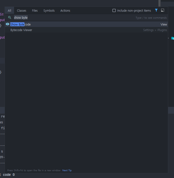 자 그럼 이제 여기에 위에 사진처럼 show byte code라고 치면 알아서 연관이 뜰텐데 그걸 엔터를 누른다. 그러면 아래와 같은게 뜰 것이다.