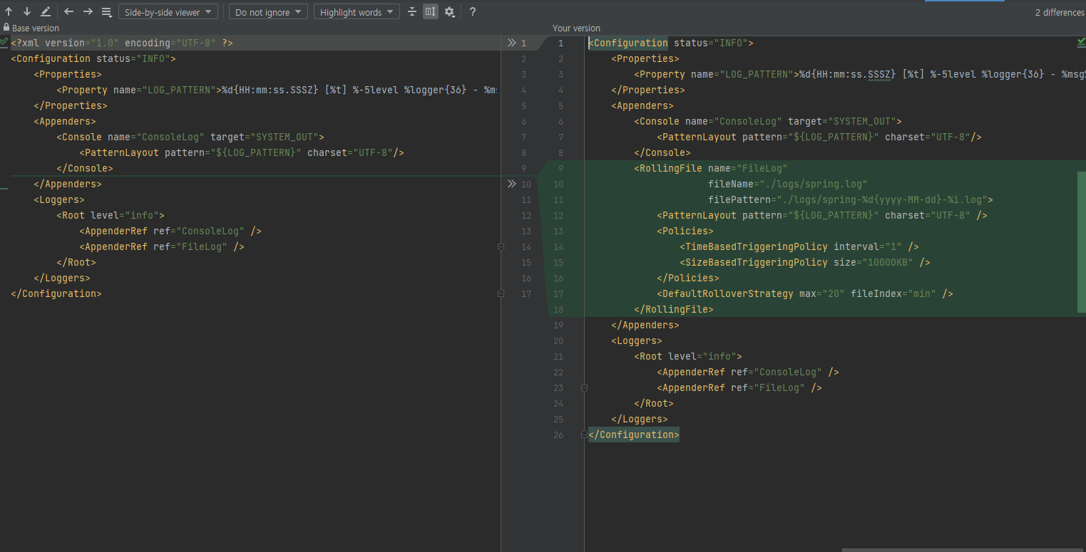 예를 들어 아래와 같은 resources 폴더에서 log4j2.xml 을 삭제했는데 다시 필요한 경우가 있다고 가정하자.