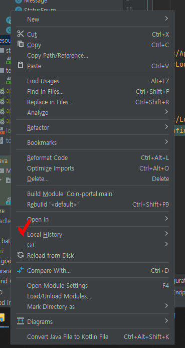 그러면 위와 같이 Local History라는 메뉴가 뜰 것이다.
