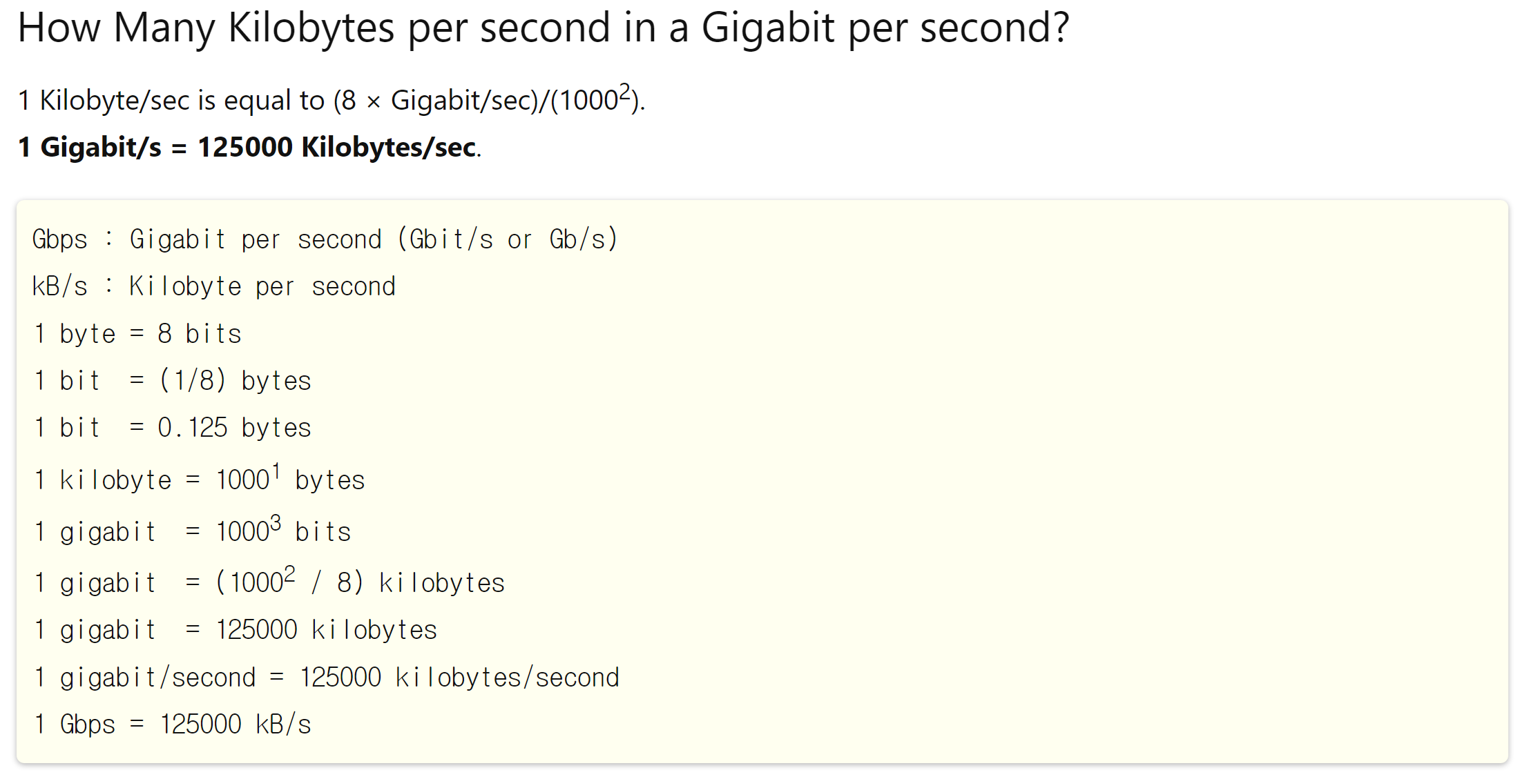 Gbps 와 GBps 를 보자면 슬쩍 보면 정말 비슷하다. 별생각없이 그냥 풀면 틀리기 쉽다.